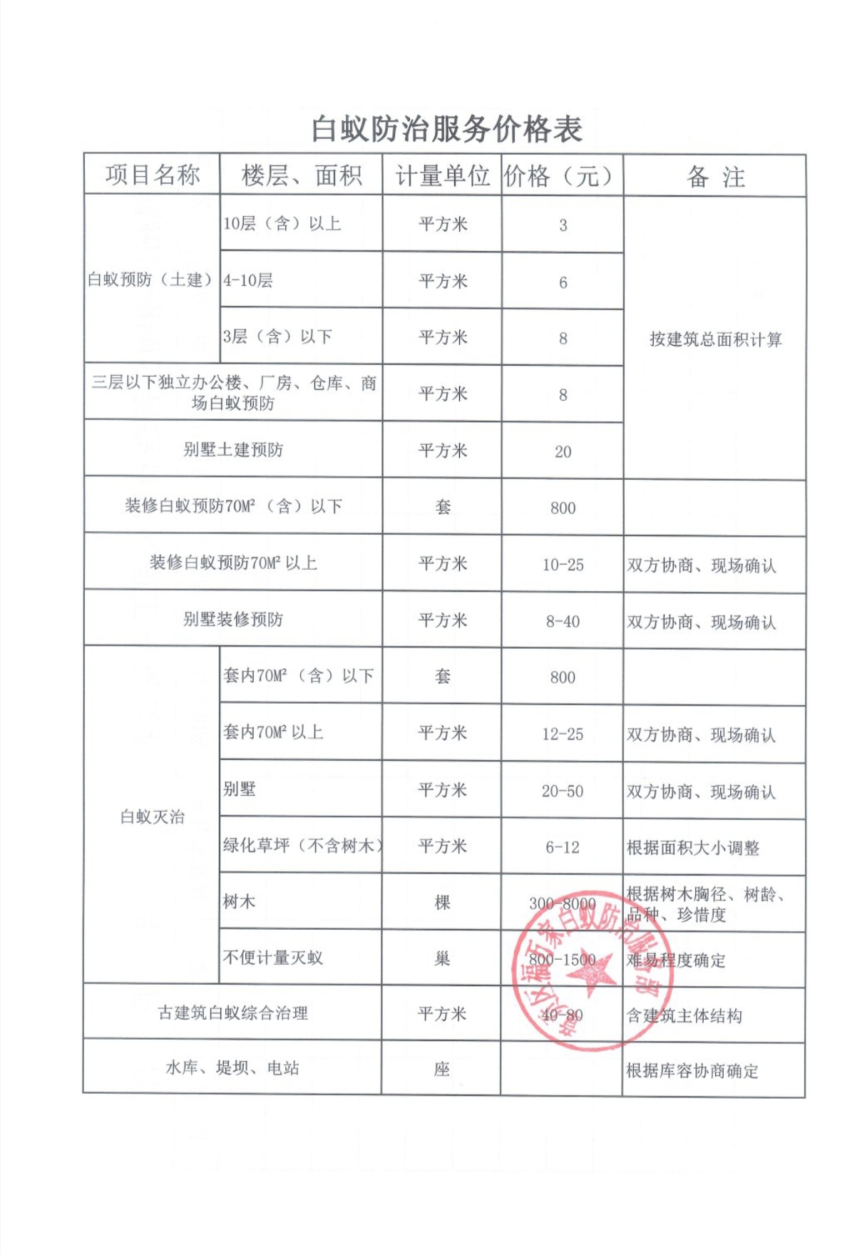 章贡区福万家白蚁防治服务部白蚁防治收费标准