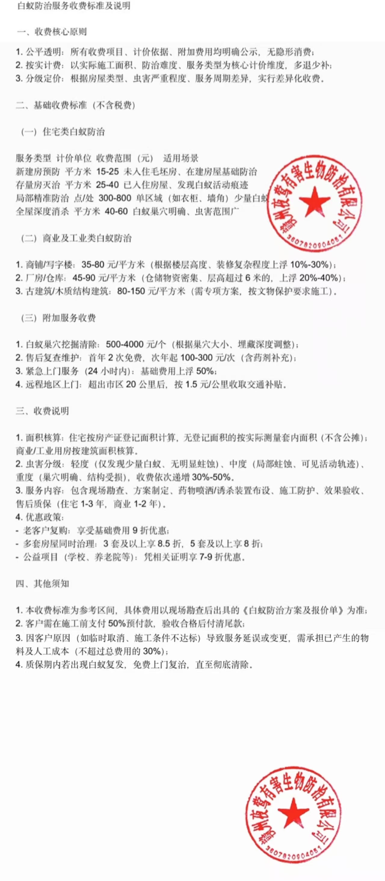 赣州夜莺有害生物防治有限公司白蚁防治收费标准