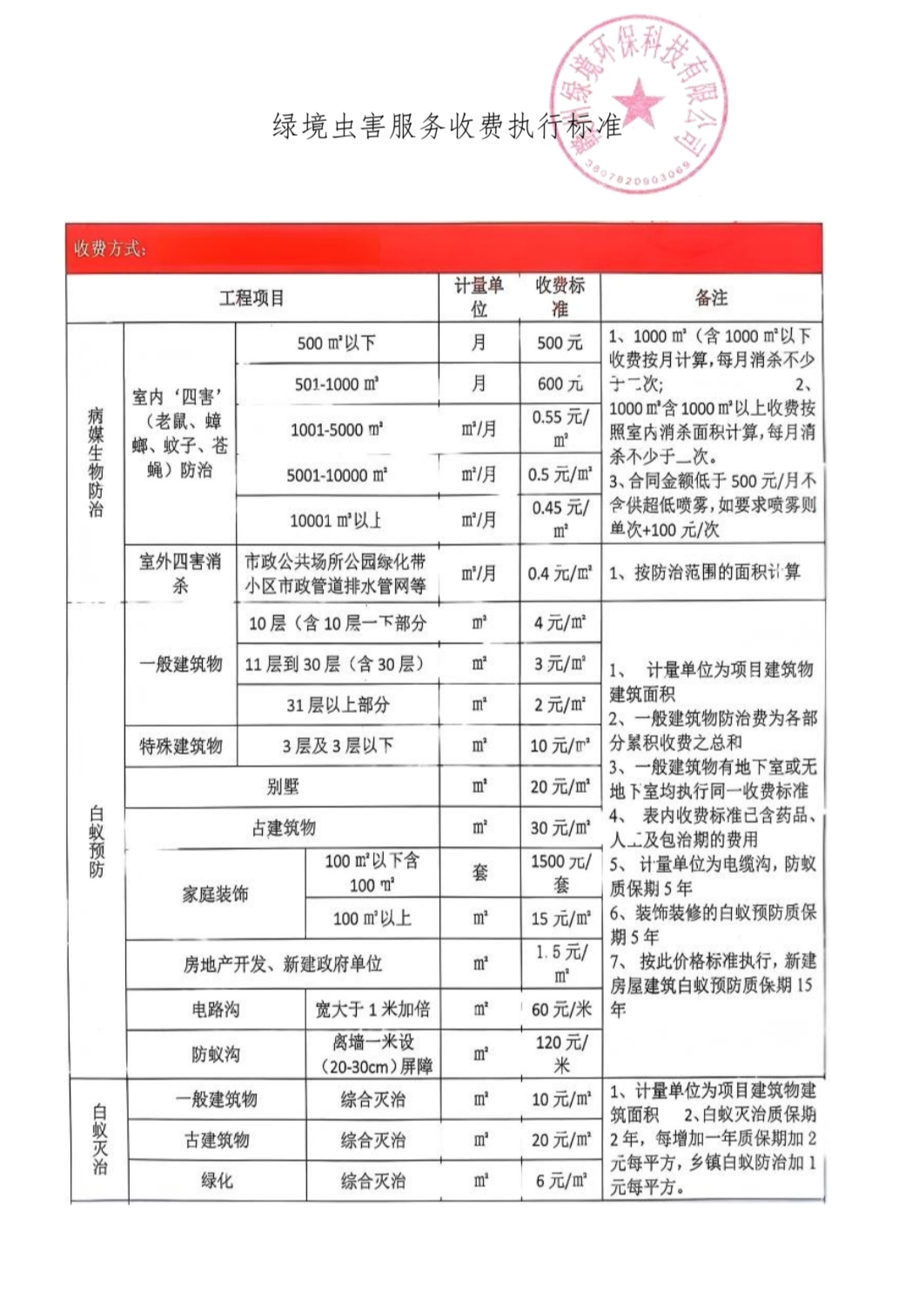 赣州绿境环保科技有限公司白蚁防治收费标准
